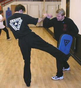 det blir en stabil spark-pelar-mitts. Innerskummet är delat